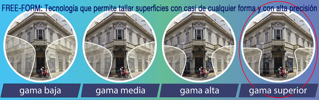 El software de diseño de lentes de forma libre (LDS, por sus siglas en inglés) mapea un diseño óptimo en la parte posterior de cualquier pieza en bruto de lente semiacabada. Este diseño sofisticado se calcula utilizando datos consolidados del paciente, que incluyen la prescripción, la montura, la posición de uso, la distancia focal, el material de la lente y la forma de la cara, por nombrar algunos. A continuación, el modelo de datos renderizado se mecaniza con precisión en la superficie posterior de la lente mediante un generador de lentes digitales. |