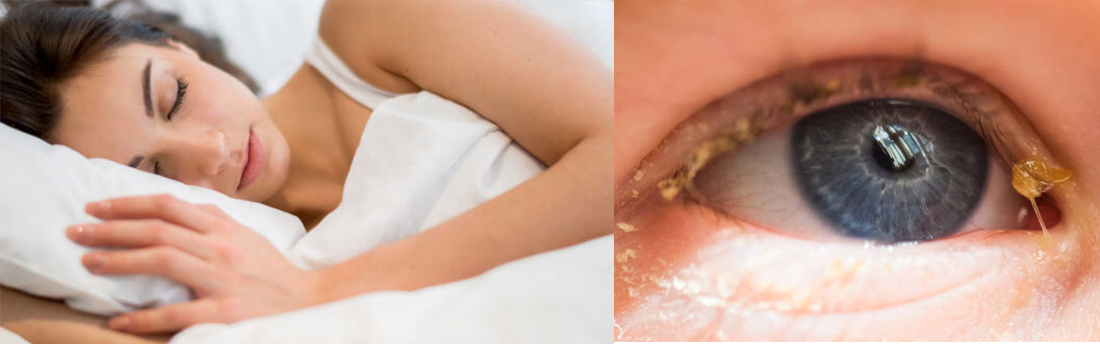 Cuando dormimos, no parpadeamos, y, por tanto, la secreción de moco, producido en la conjuntiva o en la córnea, mezclado con otras sustancias se depositan en los ángulos de los ojos formando las legañas. |