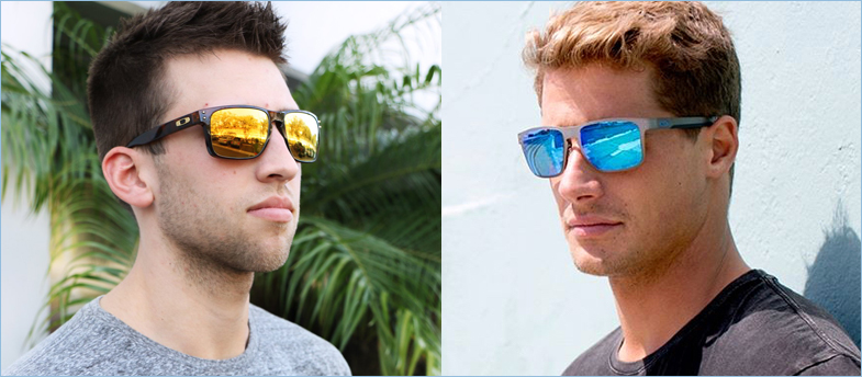 Las gafas de sol reflectantes a menudo tienen un aspecto de espejo. Los lentes de estos anteojos de sol tienen una capa reflectante aplicada en una capa muy delgada y dispersa, tan delgada que se denomina superficie semiplateada . El nombre medio plateado proviene del hecho de que, a nivel molecular, hay moléculas reflectantes esparcidas sobre el vidrio en una película uniforme, pero solo la mitad del vidrio está realmente cubierta. La superficie medio plateada reflejará aproximadamente la mitad de la luz que incide sobre ella, dejando que la otra mitad la atraviese. |