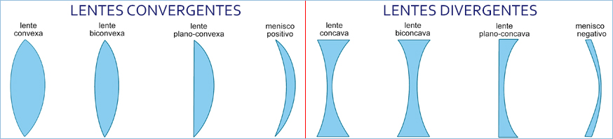 Las lentes oftálmicas pueden ser lentes convergentes o lentes divergentes, dependiendo de la forma y del efecto óptico del rayo de luz que incide en la lente. |