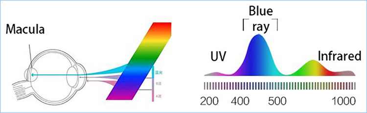 Prácticamente toda la luz azul visible pasa a través de la córnea y el cristalino, y llega a la retina. Ten en cuenta que la luz azul tiene unos efectos sobre el ojo similares a los rayos UVA. Por ello, es fácil imaginar lo negativo que es la exposición a esta. Es como si un día soleado de verano caminaras frente al sol sin gafas de sol. Pero repetido durante horas y a diario durante todo el año. |
