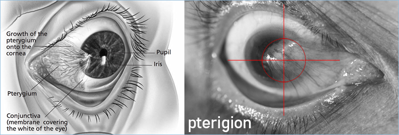 Los pterigiones son tumores benignos (no cancerosos), pero pueden desfigurar el ojo en forma permanente. También pueden causar incomodidad y visión borrosa. |